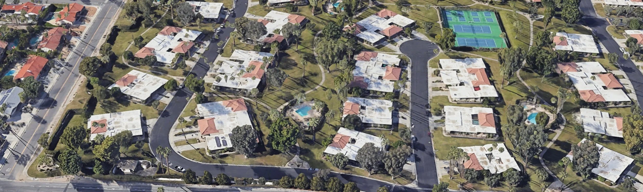 We love the the low density “verdant” Sunrise East condos! This larger end unit 3 bed floorplan has the original atrium that opens to the living room and a guest bedroom ( or home office? den? library?). The entry courtyard faces south-southeast and the back patio north-northwest. The CVLink is right out the entry gate to Sunrise East (along Mesquite Ave), and shopping and dining are just a few blocks away at both the Smoketree Village and Smoketree Commons shopping centers. Also nearby is the Prescott Preserve. If you’re looking for a house-like condo with an attached two-car garage, and owned solar, you’ll want to see this one! Sunrise East is located in the Sonora Sunrise/Los Compadres neighborhood.