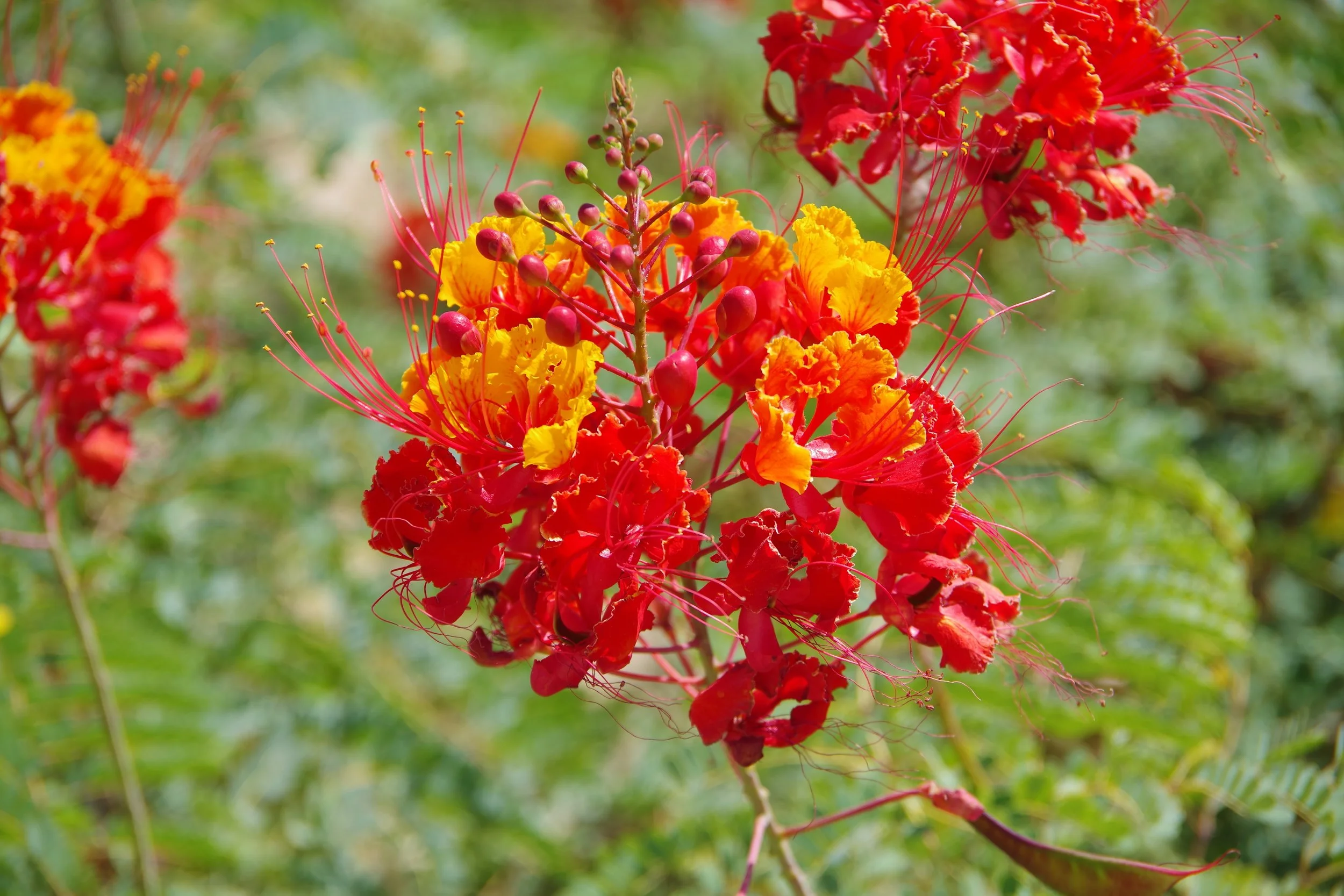 If you’re looking for a flowering plant that looks good over the hottest summer months, check out Mexican Bird of Paradise (caesalpinia pulcherrima). Mexican Birds, as I call them, relish the heat, and their large orange-red blooms with yellow are the best and most prolific under sunny blue skies. Perhaps because they don’t look their best over the winter months, most local gardeners cut them back hard in the winter, but I personally like to leave them to their natural size, only removing dead and “leggy” stems in the spring. This allows the plant to get large verses limiting its size to the spring and summer growth. Either way, they’re a great choice for pops of summer color, plus hummingbirds, bees, and butterflies love them! Mexican Birds are also a tropical that doesn’t require a lot of water, though it does need at least weekly irrigation to bloom nicely. I personally like them combined with cacti, like golden barrels or various agave species, the contrast of the “bold” cacti with the small, delicate leaves and flowers of the Mexican Bird is stunning, plus I just like mixing tropicals and cacti when it’s appropriate (water, light needs…). Plant them anyplace that gets lots of sun. They are readily available at local plant nurseries, including at the plant centers at the big box stores.